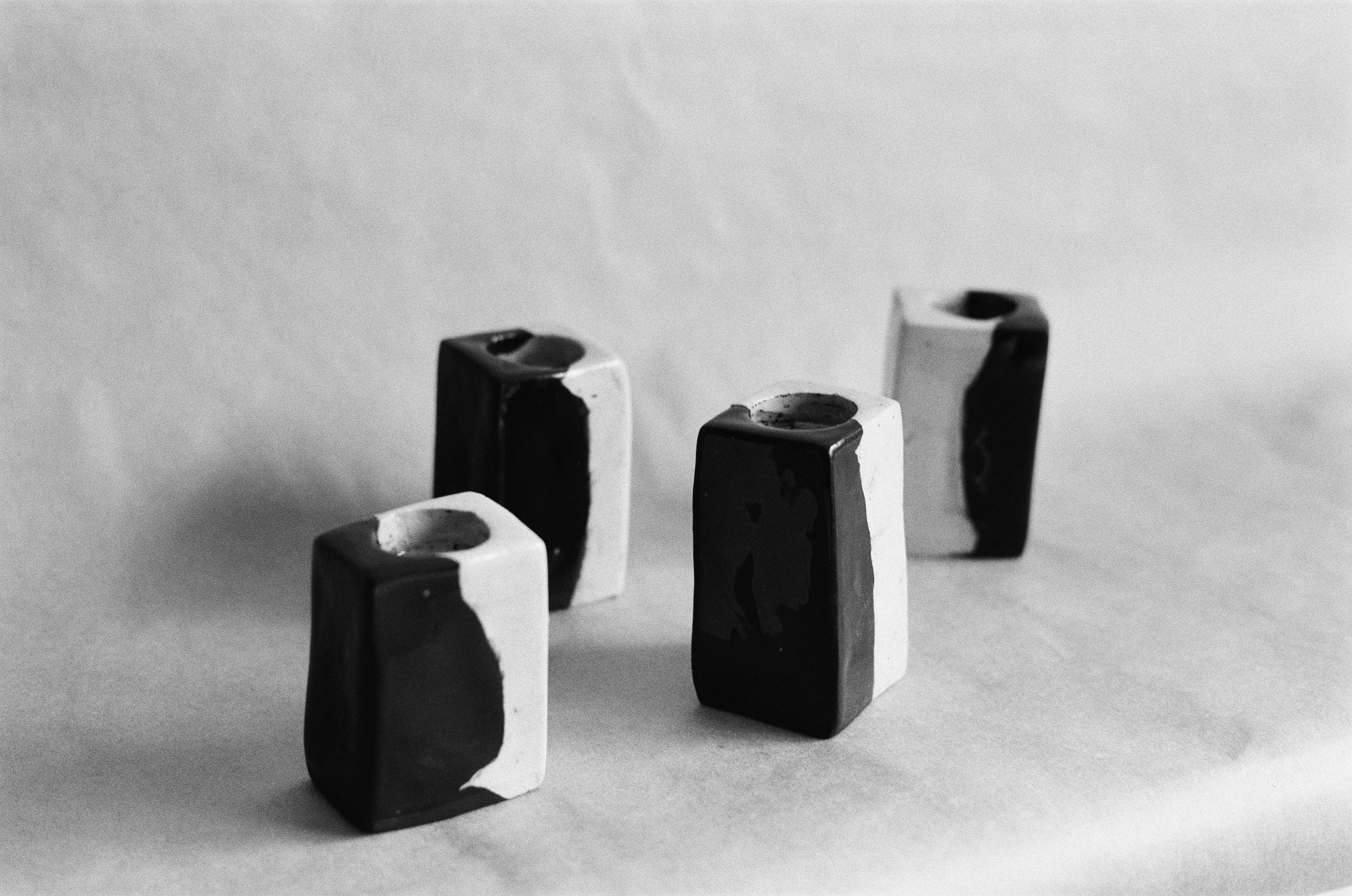 Set of 4 solid block candle holders.