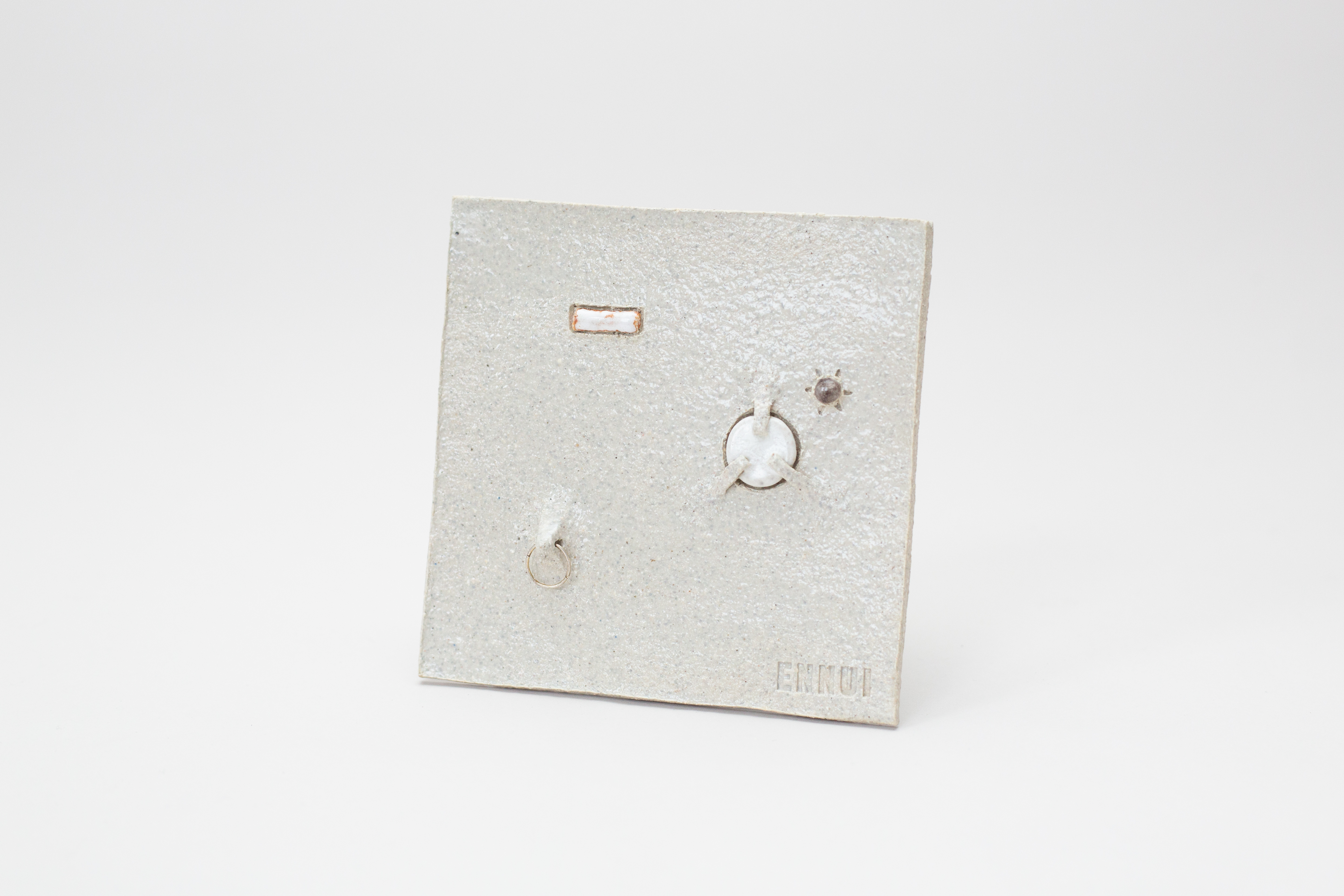 Stoneware tile with silver ring, one-off design.