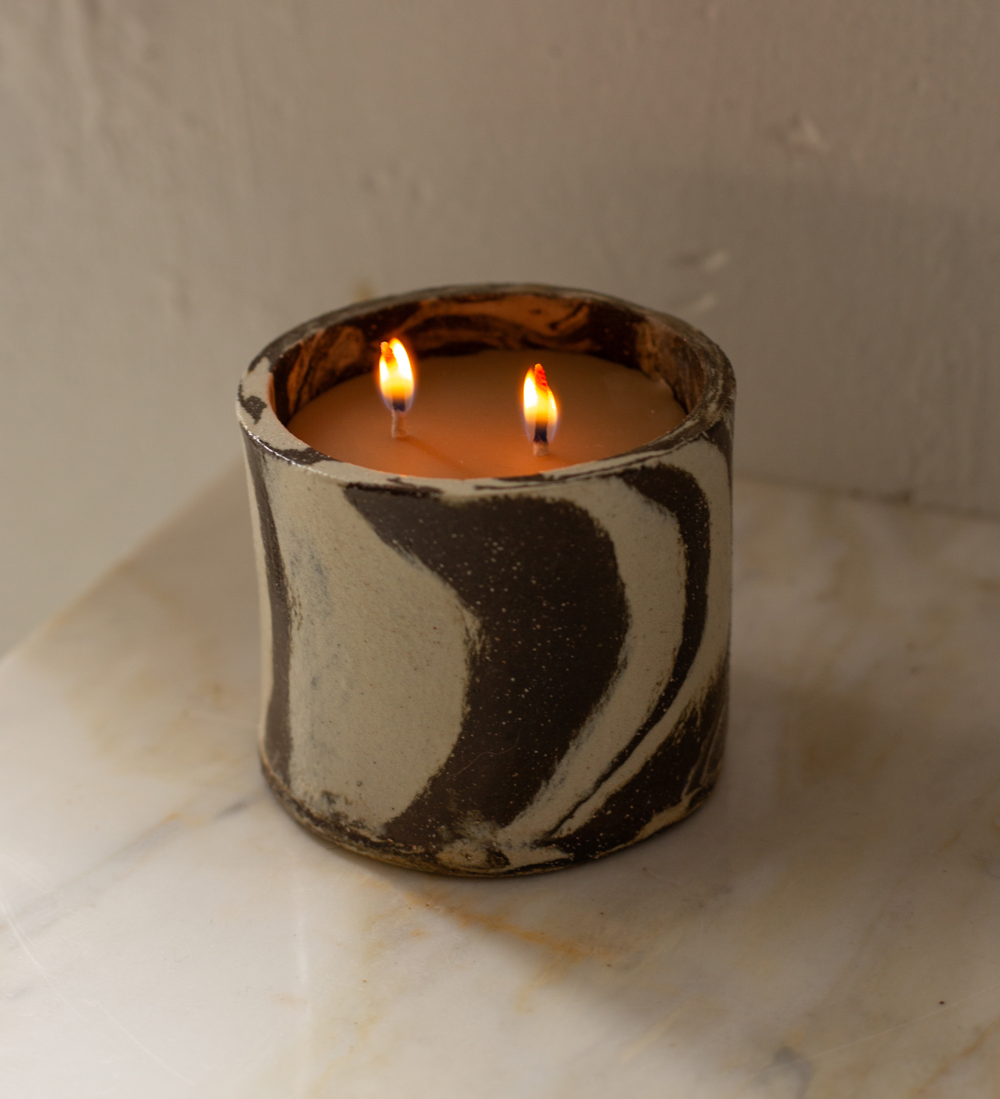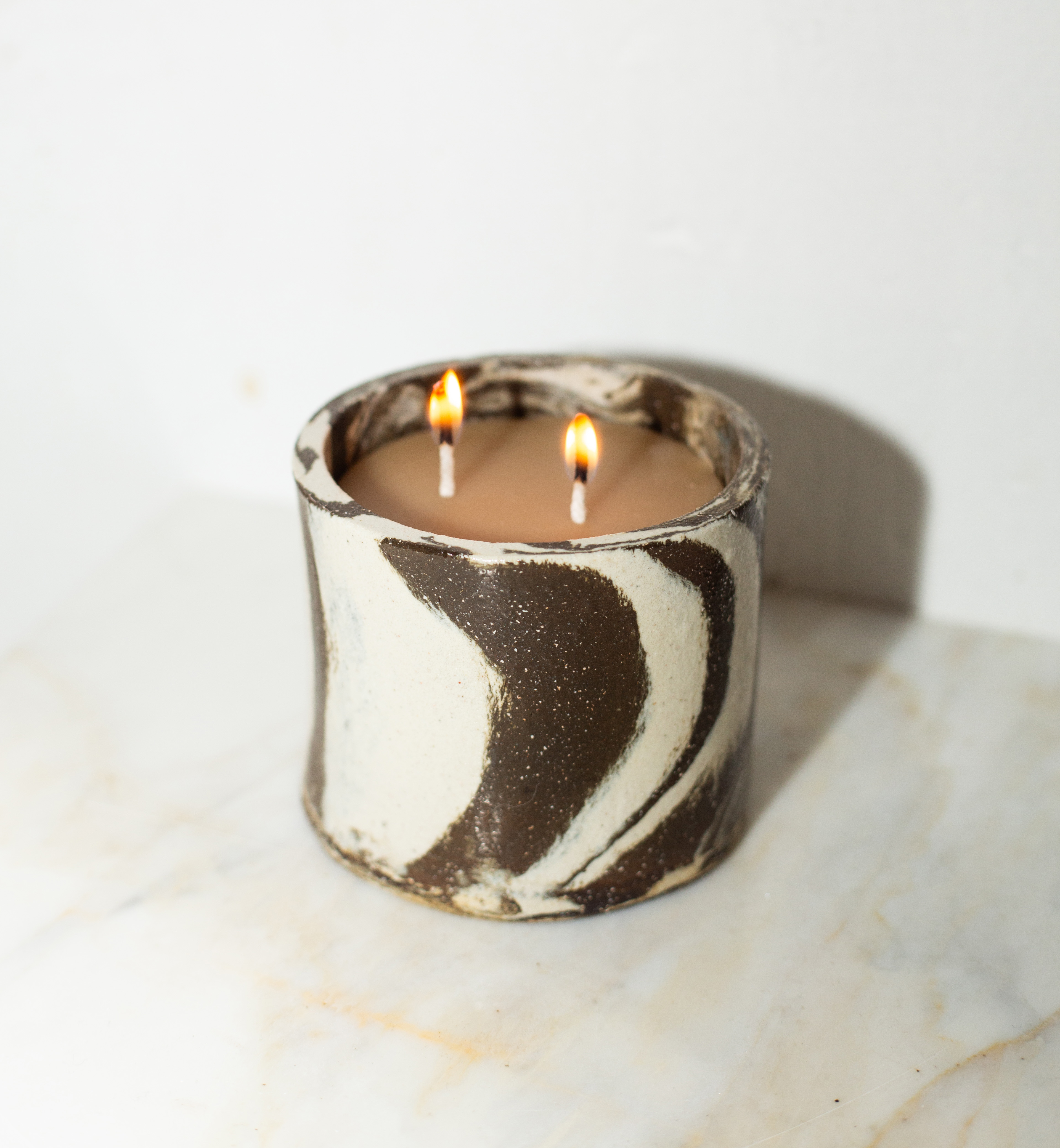 Ennui ceramic cup is handmade from mixed stoneware clays that are layered into a unique pattern. Fully glazed in a clear gloss.